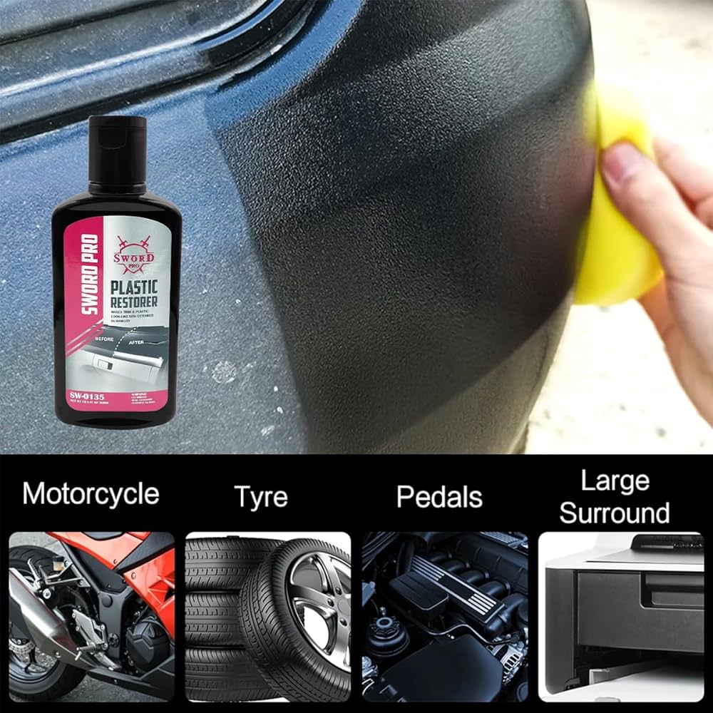 Restore your car's sleek appearance with Sword Pro Plastic Restorer , the perfect solution for rejuvenating faded plastic and rubber surfaces.
