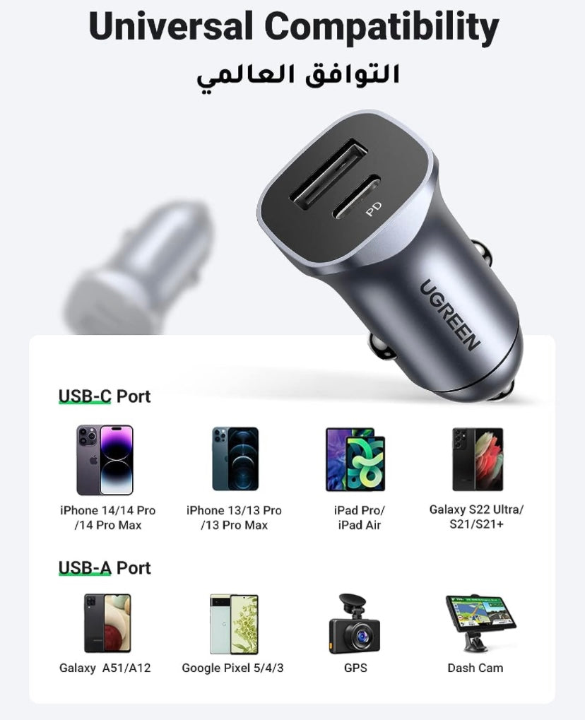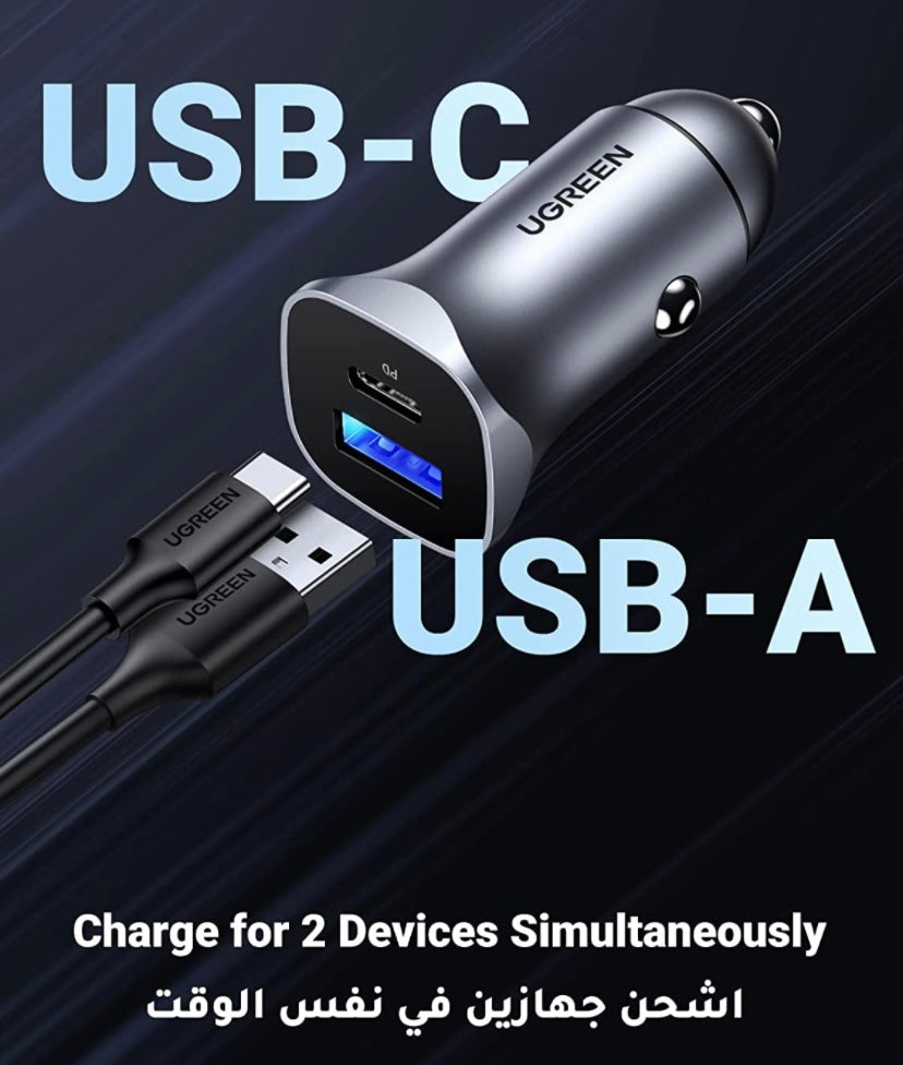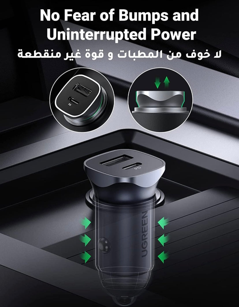 Ugreen PD Car Charger is a car charger based on PD technology to provide fast charging for your devices on the go. It has a compact design and comes with two USB ports for the convenience of in-car charging.