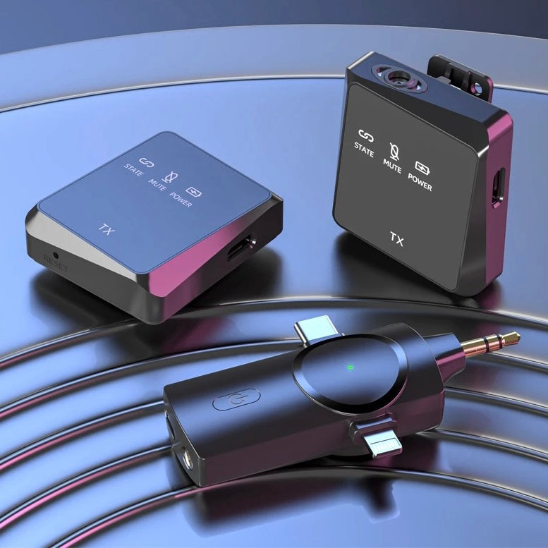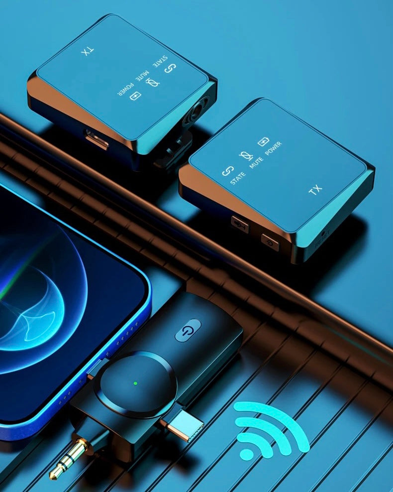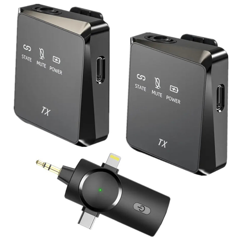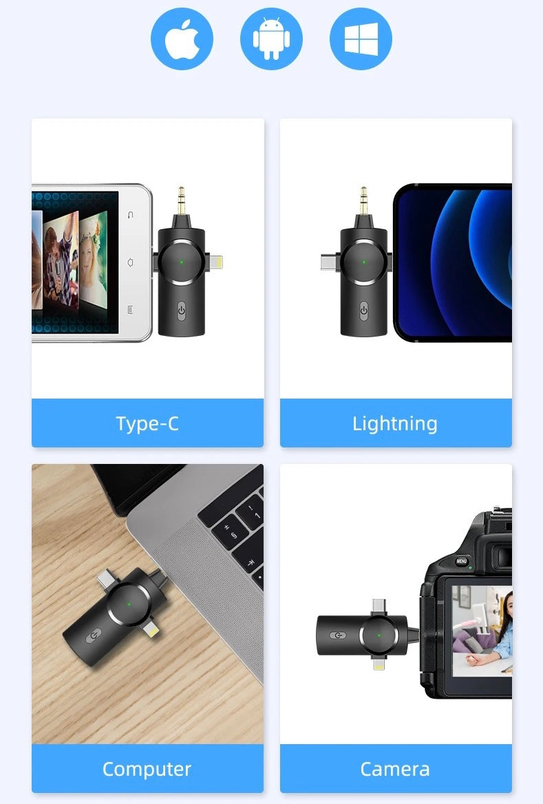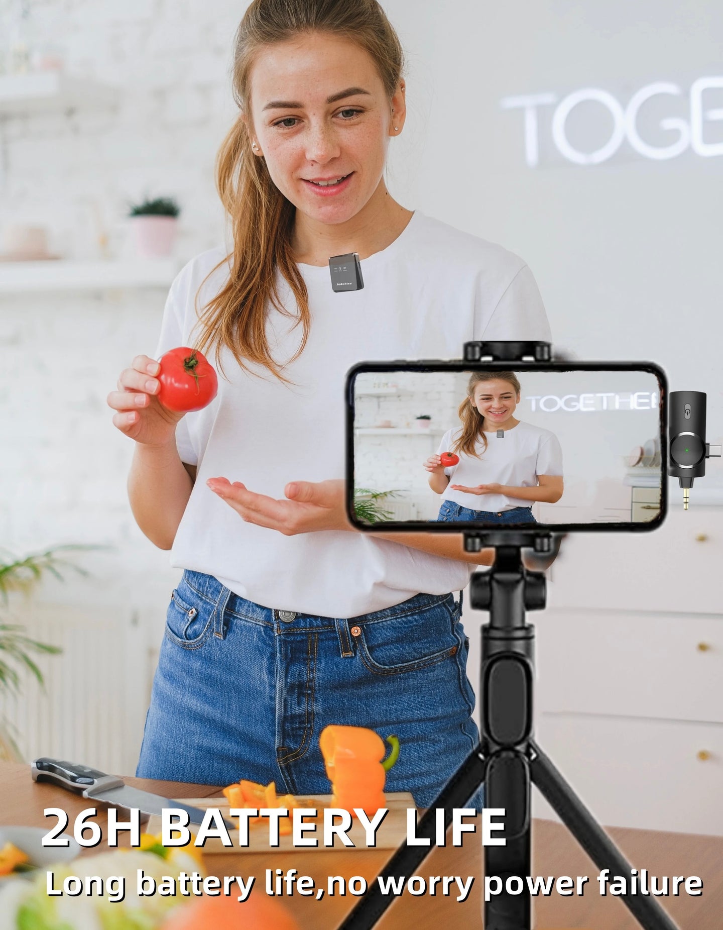 wireless lavalier microphone for iPhone iPad android pc camera,26h battery life,3-in-1 mini lapel mic for video recording