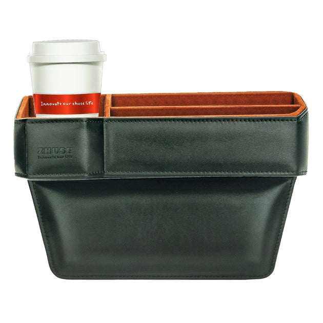 ZHUSE Car Seat Gap Organizer with PU Leather Storage Box with Cup Holder
