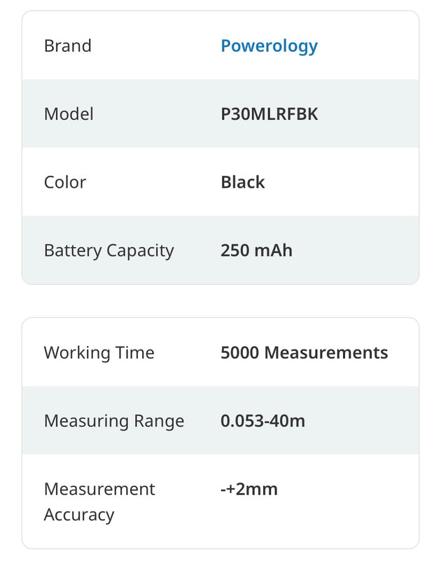 POWEROLOGY Smart Laser Measurement Tool for Distances up to 30 Meters