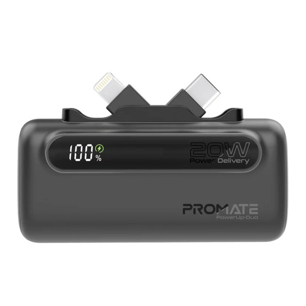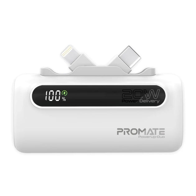 Power bank with a capacity of 20,000 mAh, 35 watts, with a built-in cable for charging iPhone and USB-C from Promate