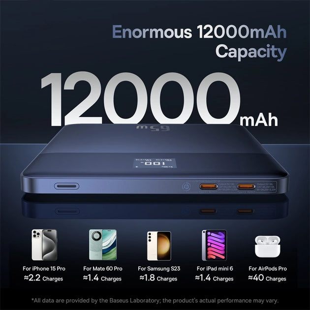 Blade 2 power bank with a slim body, 12000 mAh capacity and 65 watts from Baseus