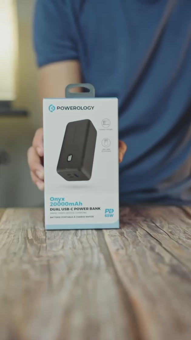 Powerology's stylish Onyx power bank with a capacity of 20,000 mAh and a power of 65 watts