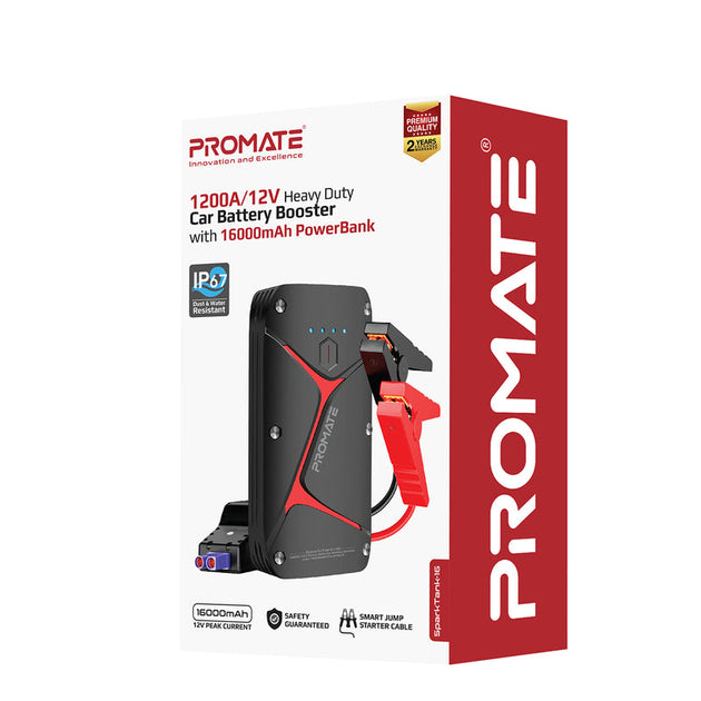 Jump starter for the car with a power of 1200 amps with a power bank with a capacity of 16000 mAh from Promate