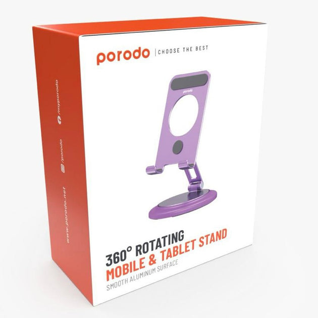Porodo Smooth Surface Aluminum 360 Degree Rotating Phone and Tablet Holder