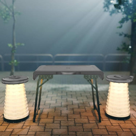 Porodo Camping Foldable Desk and LED (White/Yellow) Stool Set