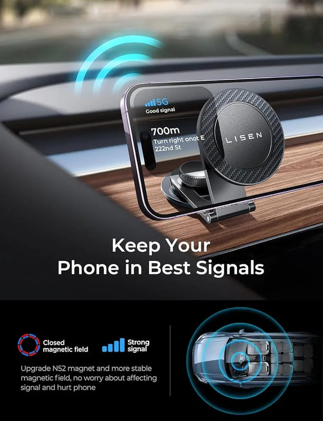 Magnetic Car Phone Holder with Foldable Suction Cup Base
