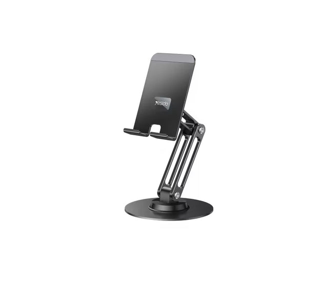 YESIDO Metal Desktop Phone Holder with 360° Rotating Base and Foldable Design