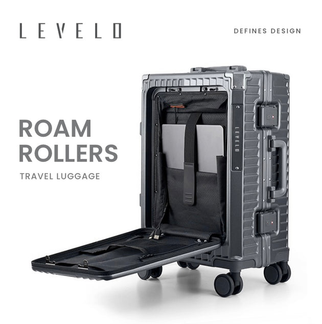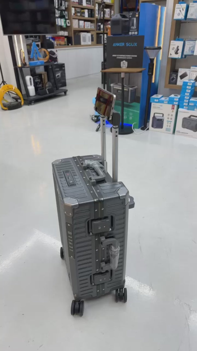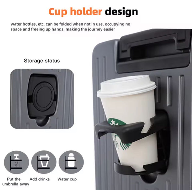 Premium 20-inch multi-compartment aluminum frame suitcase with foldable cup holder