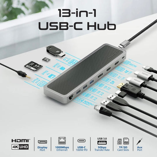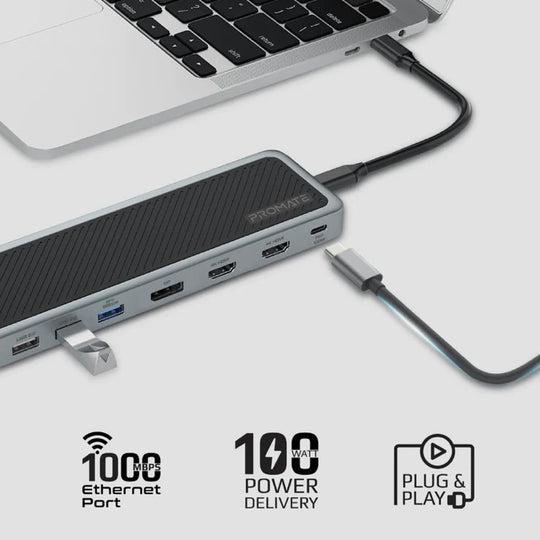PROMATE 13 in 1 ApexHub-MST 4K@60Hz Triple Display Multi-Port USB-C Docking Station