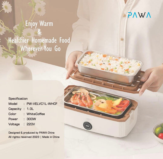 Pawa electric thermal lunch box for heating food at the same time, stainless steel
