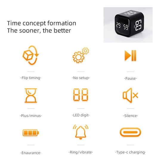 Portable Gravity Sensor Rotating Cube Timer with Count Up and Down Function, 5/10/30/60 Minutes Timer and Customizable with LED Display