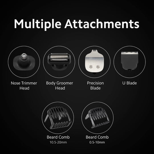 Professional Shaver, Body Trimmer, Nose & Ear Hair Trimmer, Beard Comb, 40 Length Settings, 0.5mm Precision, Type C & 90 Minutes Run Time