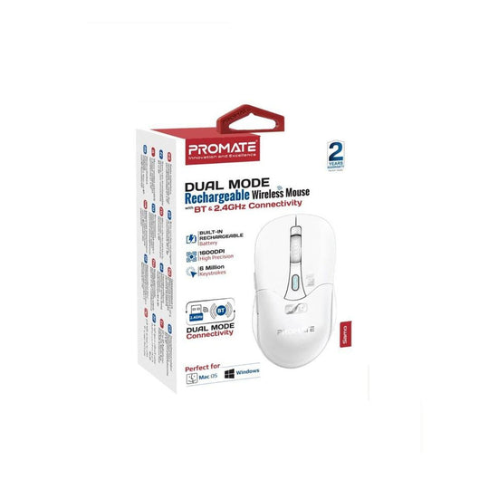 Samo.WHT – Promate Rechargeable Wireless Mouse with Bluetooth and RF Connectivity