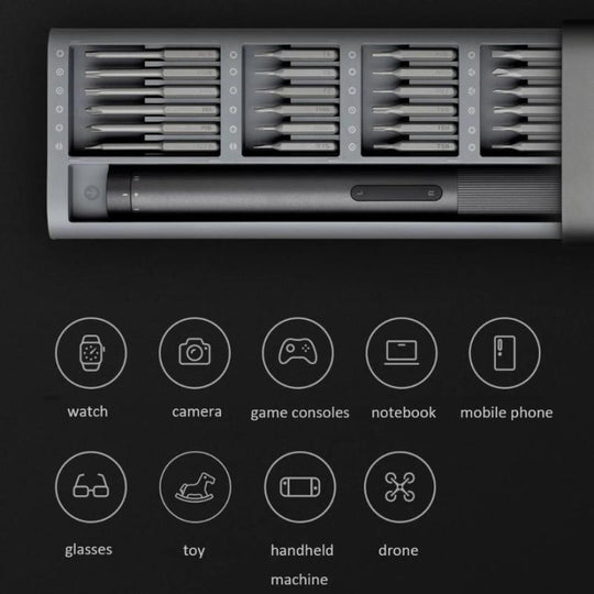: Explanatory video https://www.instagram.com/reel/Cgqv_gDA4bM/?igshid=YmMyMTA2M2Y= The Xiaomi Mijia Precision Screwdriver Kit is a portable tool set containing 24 different pieces of screwdriver bits, designed for various repair tasks. It features a magnetic screwdriver handle and Torx bits,...Regular price AED 155.00 -