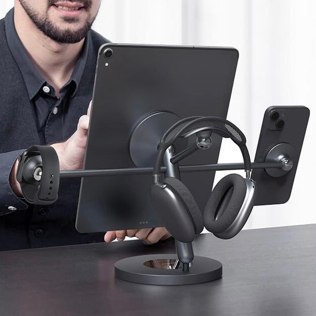 Magnetic stand to install more than one device at the same time for iPhone, iPad, Apple Watch, headphones
