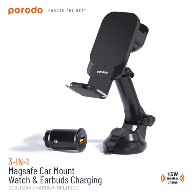 PORODO Magnetic Stand with Wireless Charging for iPhone, Apple Watch and AirPods