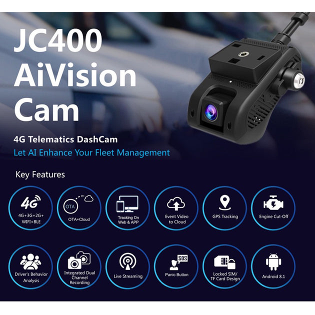 JC400 4G Smart AiVision Dashcam with Front & Rearview Dual 1080P Live Video Monitoring GPS Tracking & SOS Alarm by Mobile APP