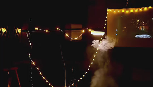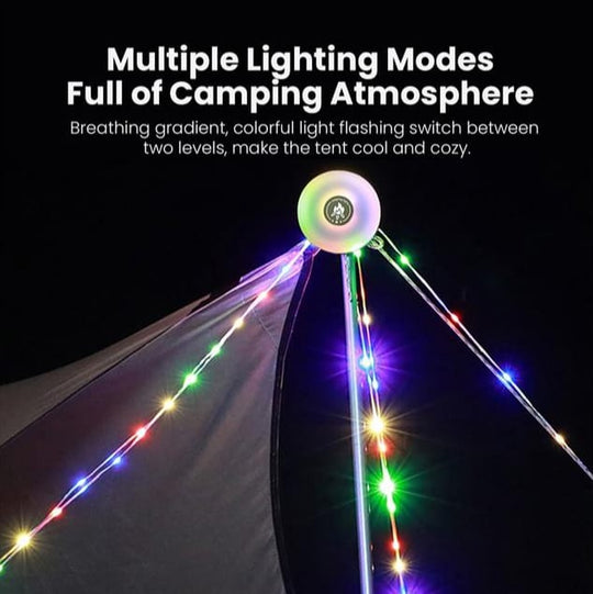 A trip lamp with 4 foldable and hanging lights and multi-colored lighting