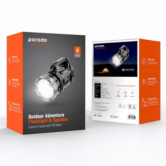 Porodo 10W 3-in-1 Outdoor Flashlight with Radio and Bluetooth Speaker