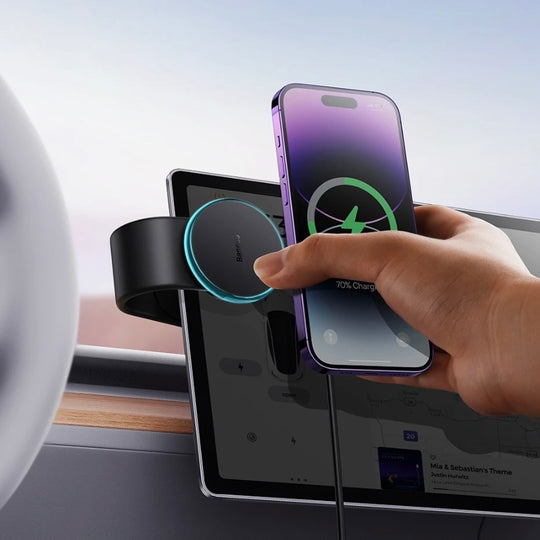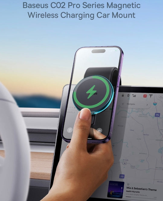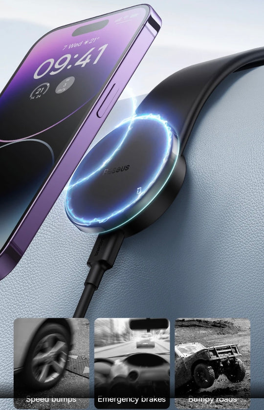 Flexible car phone holder with MagSafe feature and a 15W wireless charger from Baseus