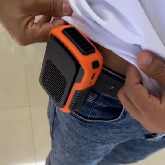 Enjoy fresh air on the go with the Hanging Waist Fan and Power Bank F-116: Your Stylish and Practical Portable Cooling and Charging Companion