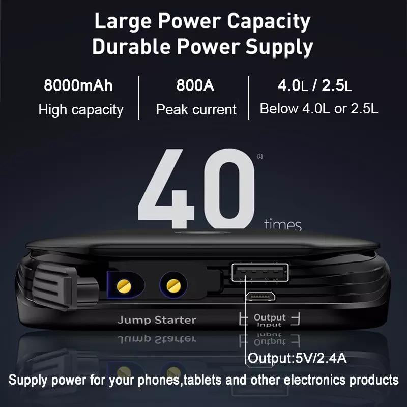 **With the Baseus Car Battery Jump Starter, you can be sure that you will never be stuck with a dead car battery, and it can also be used as a portable power source to charge other electronic devices.**