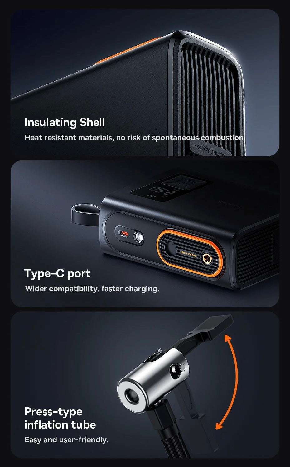 The inflator effectively pumps air into the tires with precise and fast pressure, providing you with optimum safety and performance while driving. It has a digital screen that displays pressure readings clearly, allowing you to easily monitor and adjust pressure.