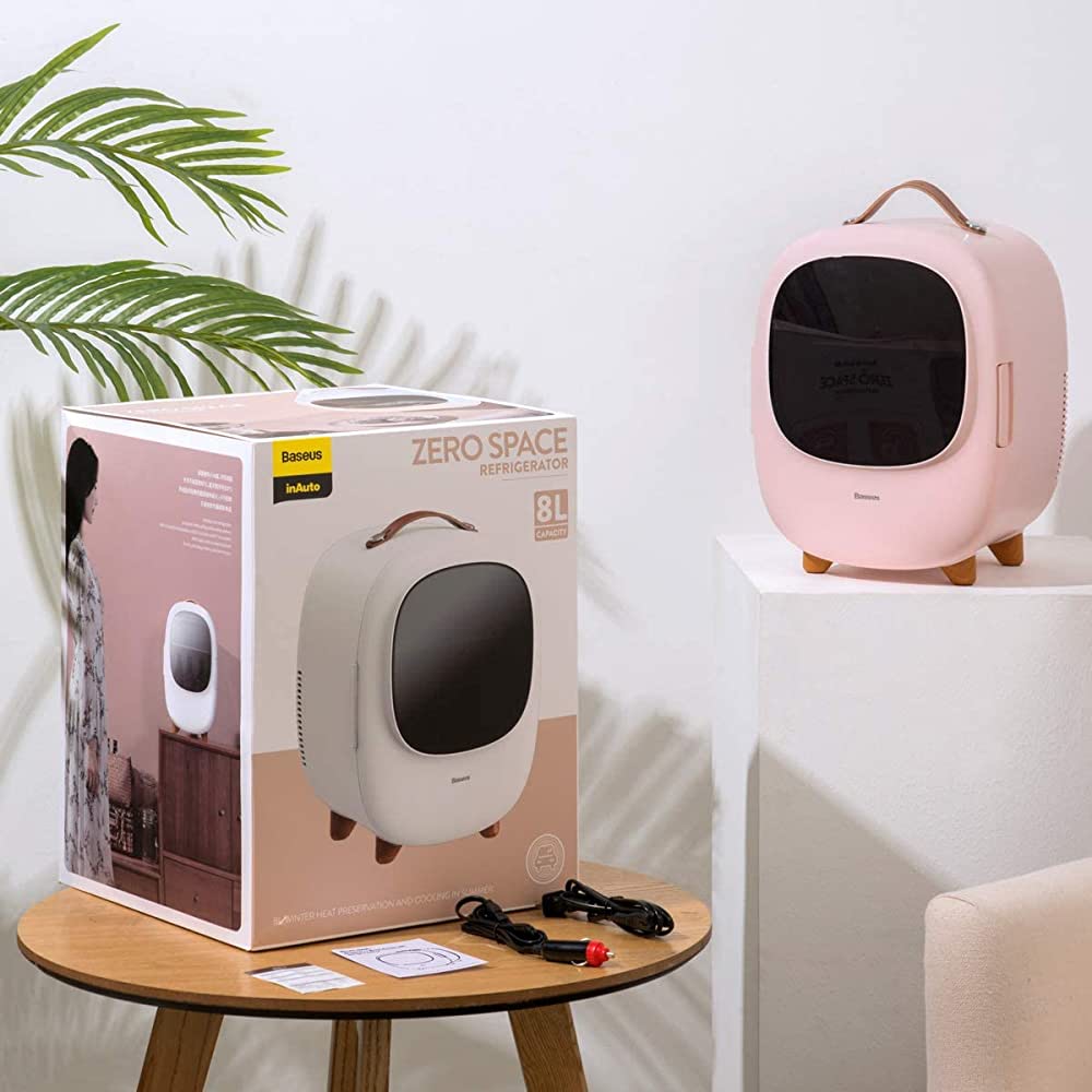 This unique mini fridge features a modern and compact design that makes it ideal for use in tight spaces. This refrigerator comes in an elegant pink color that adds a touch of elegance to any place it is placed.