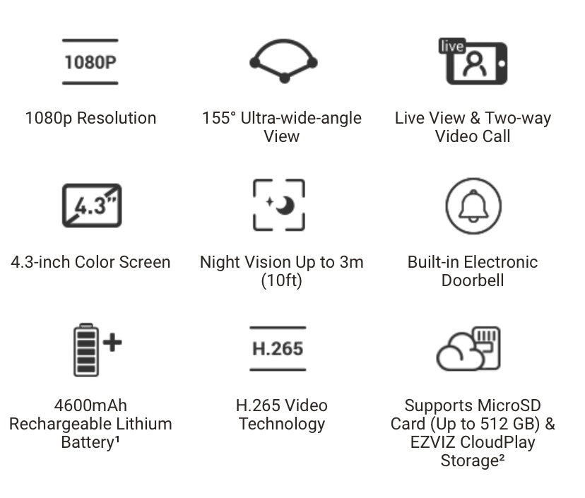 - Support for MicroSD card (up to 512GB) and EZVIZ CloudPlay² storage
