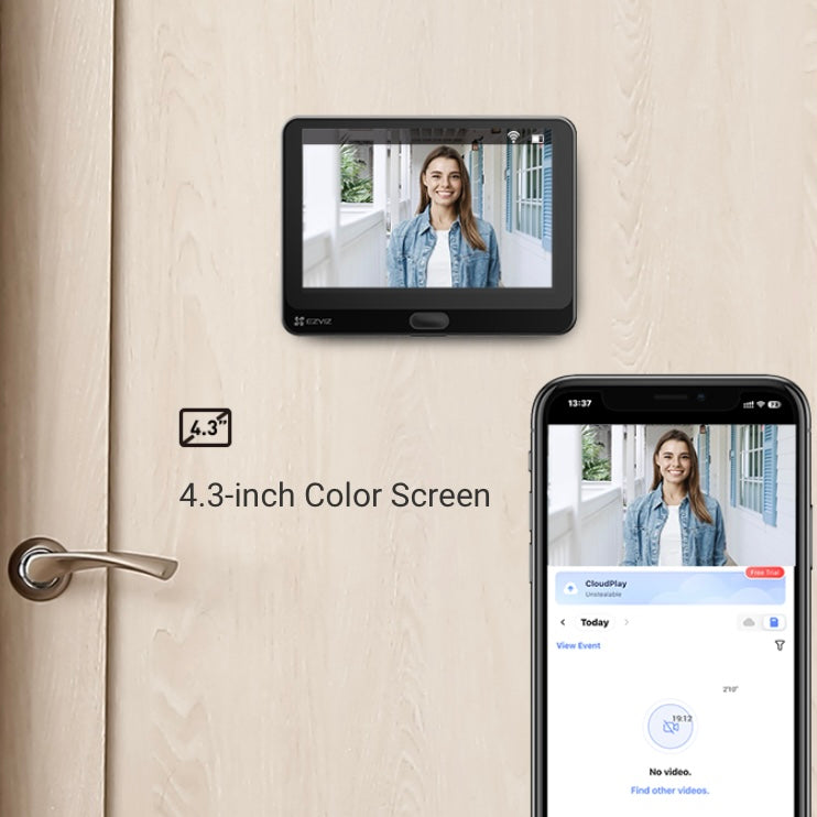 You can easily view live video from both the **EZVIZ** app and the convenient 4.3-inch color screen. The screen delivers vivid 1080p clarity, making it easy for seniors and children to see what's happening outside.