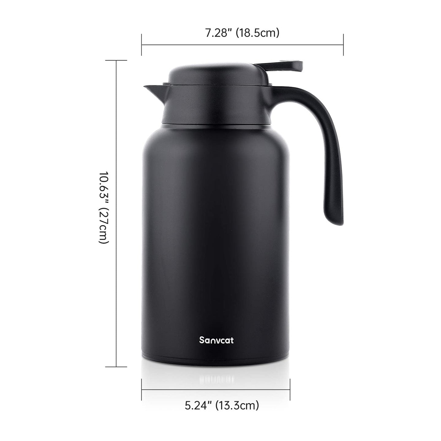 ERGONOMIC DESIGN: The vacuum insulated hot coffee dispenser has a handle that is 6.7 inches (17cm) long and 1.18 inches (3cm) wide, and a body made of high-quality materials.