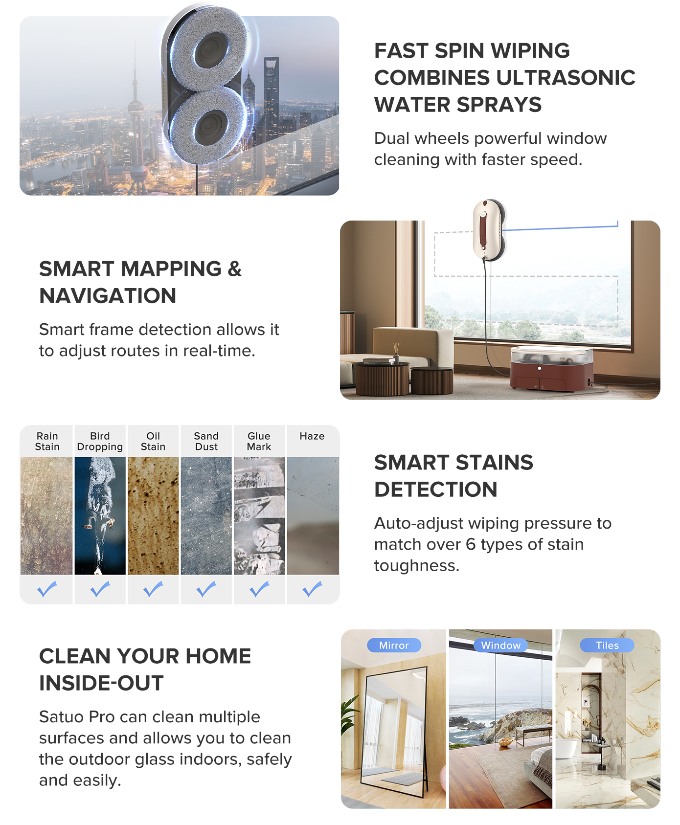 The spiral structure of the nuelus has been developed for 500 million years, and the air path design is further improved, combined with the new design of the Coanda air duct, which greatly enhances the suction safety of the window cleaning robot and the twisting strength of the cleaning wipes, making it safer and more efficient under the same Power compared to other models.