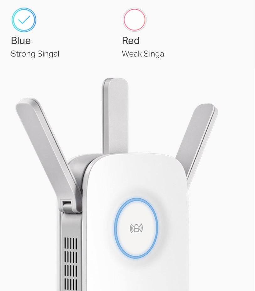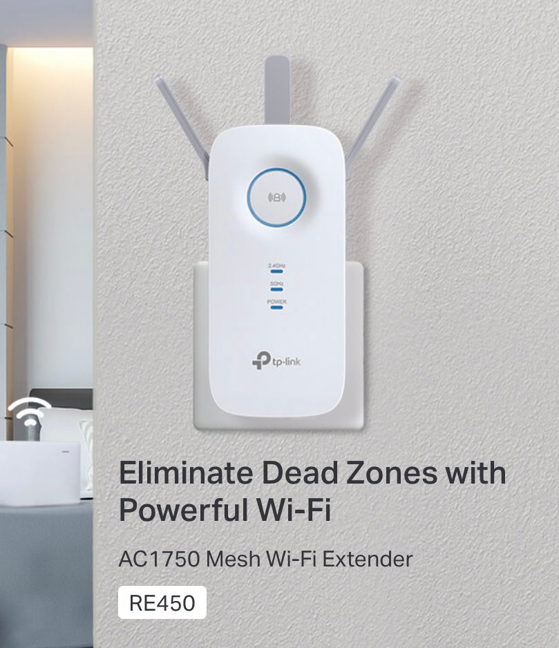 Strong Signals in Every Corner If there's a room where you can't connect to the internet in your mid-size or bigger home, RE450 eliminates these dead zones. With three high-performance antennas, your WiFi transmits farther with stronger signals. RE450's two bands (2.4 GHz and 5 GHz) also enable more reliable device connections
