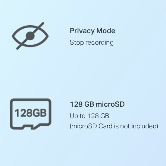 Privacy Mode and Local Storage Ensure Privacy A microSD card stores up to 128 GB, equal to 384 hours (16 days) of footage. This allows you to not only cut down on your personal expenses on cloud storage, but also feel secure that your video is stored at a high-rate speed on a local card accessible only by the device administrator. (Based on laboratory conditions)