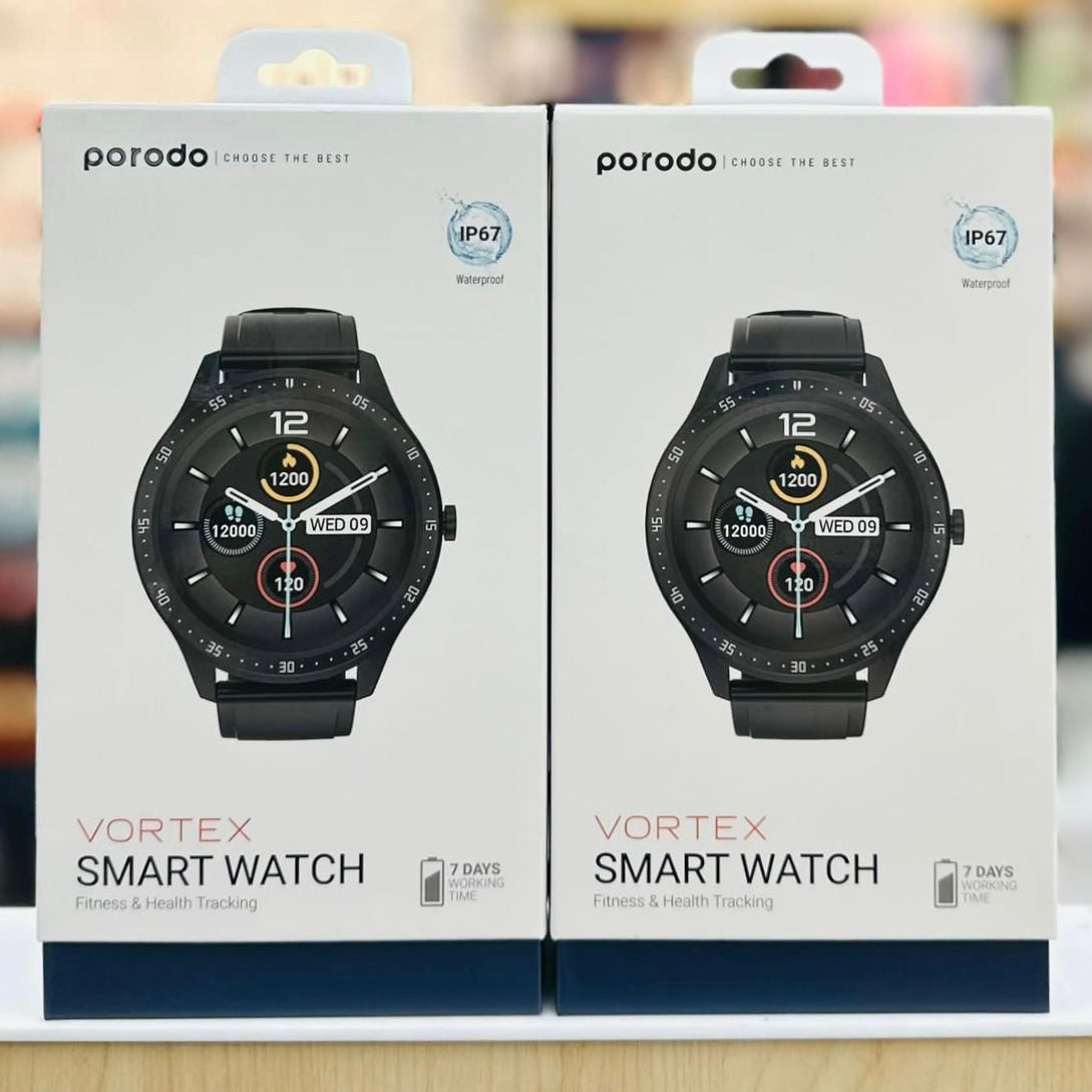 The Porodo Vortex Smart Watch is professionally designed for fitness and health tracking. The 210mAh lithium battery has an impressive standby time of up to 25 days and can work continuously for up to 7 days. This smart device can connect to iOS and Android devices using Bluetooth version 4.0 and can be controlled remotely via its available app. With this smart device, you can now manage your calls and music while monitoring your activity, heart rate, blood oxygen level, and sleep. With IP67 waterproof technology and various sports settings, you can wear it comfortably during any activity that involves water sports to a depth of up to 1 meter. Since it has a touch screen, you can easily control all the device's notifications and capabilities directly. With this well-designed device, you can now stay updated about your daily activities.