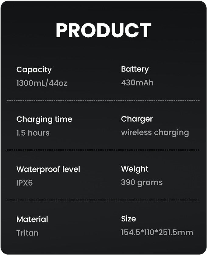 In addition, the smart bottle has a water consumption tracking and analysis feature, as it can record and monitor the amount of water drunk throughout the day. The user can view water consumption data via an accompanying application on a compatible mobile phone or tablet.