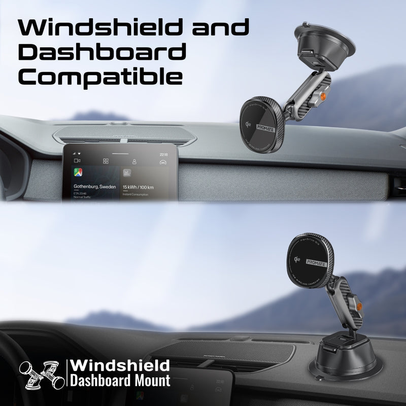 Promate 15W MagSafe-Compatible Magnetic Wireless Car Charger and Mount with Unique Design