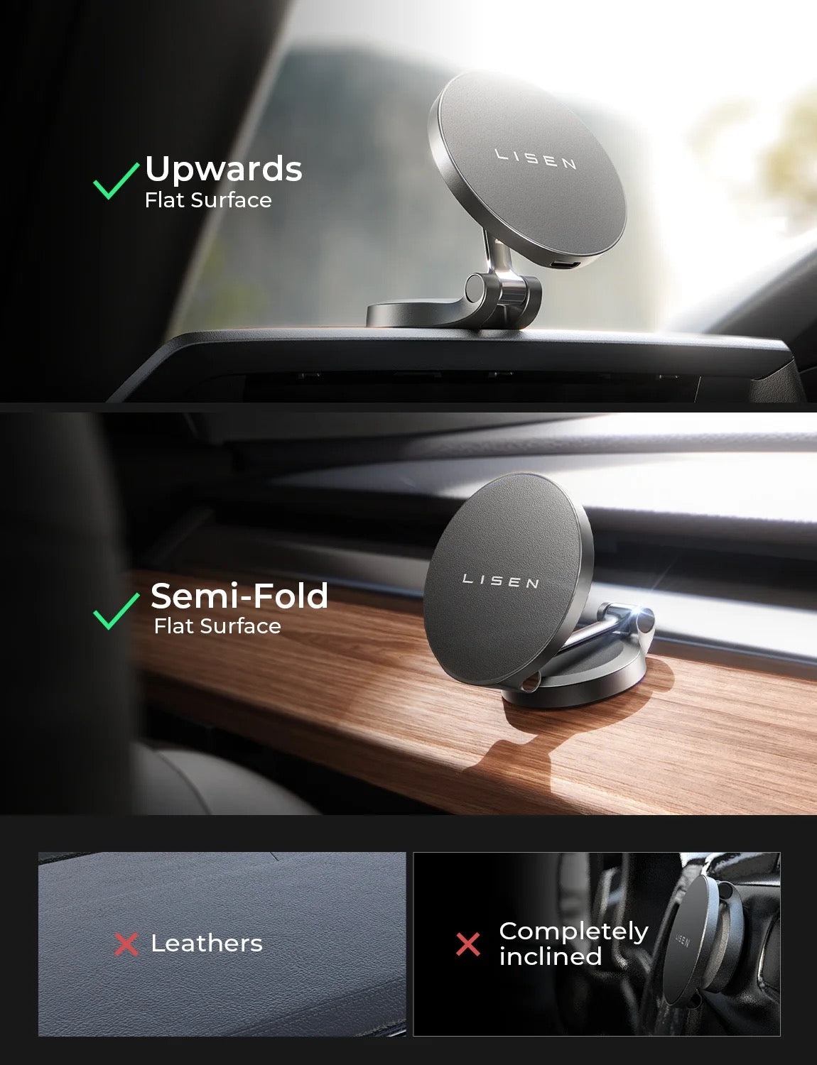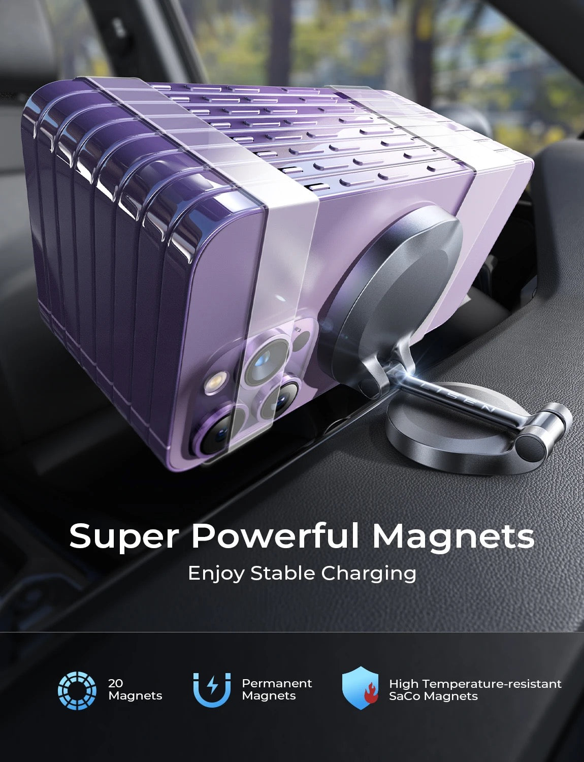 Enjoy an innovative charging experience with the LISEN Magnetic Wireless Phone Holder . Designed from high-quality aluminum, this holder combines fast wireless charging with a practical design, making it ideal for holding your phone while driving.