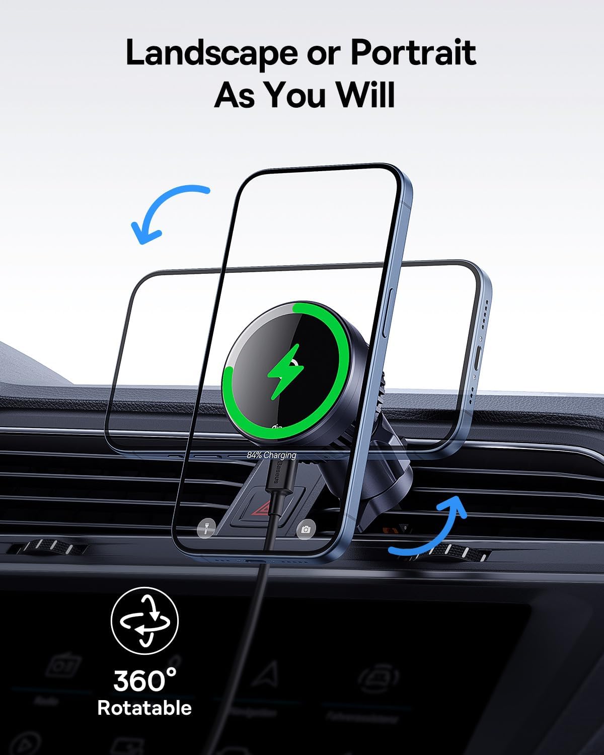 Combine convenience and safety while driving with the Baseus MagPro Magnetic Wireless Charging Pad , specially designed for mounting on car air vents. This smart mount not only securely holds your phone, but also charges it wirelessly with up to 15W , making it the perfect solution for navigation and calls while driving.