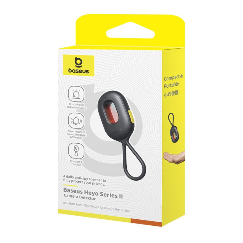 Protect your privacy wherever you go with the Baseus Heyo Series II , a smart, portable camera detector that provides precise and effective protection against any hidden threats. Featuring advanced infrared and red light detection technologies, it allows you to easily detect hidden cameras in various locations.