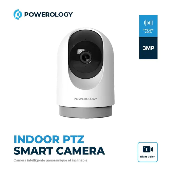 The Powerology Indoor PTZ Smart Camera is the perfect choice for securing your home. This camera delivers crystal clear images at full HD resolution of 2304 x 1296 pixels. You can easily pair devices via Bluetooth or QR code scanning using AP mode. Security monitoring is enhanced by advanced human body detection and dedicated activity monitoring zones. Pan and tilt control provides flexible and comprehensive surveillance coverage. Real-time monitoring ensures you can view live footage at any time, and two-way audio communication with echo cancellation allows for clear, uninterrupted sound. Customizable sensitivity levels reduce false alarms, and 3D Noise Reduction (3DNR) technology with wide dynamic range (DWDR) provides the best image clarity in any lighting conditions. With two infrared lights, you can count on effective night vision up to 8-10 meters away. Rest assured about your home’s security with the Powerology Indoor PTZ Smart Camera – the perfect combination of advanced technology and easy-to-use features for indoor surveillance.