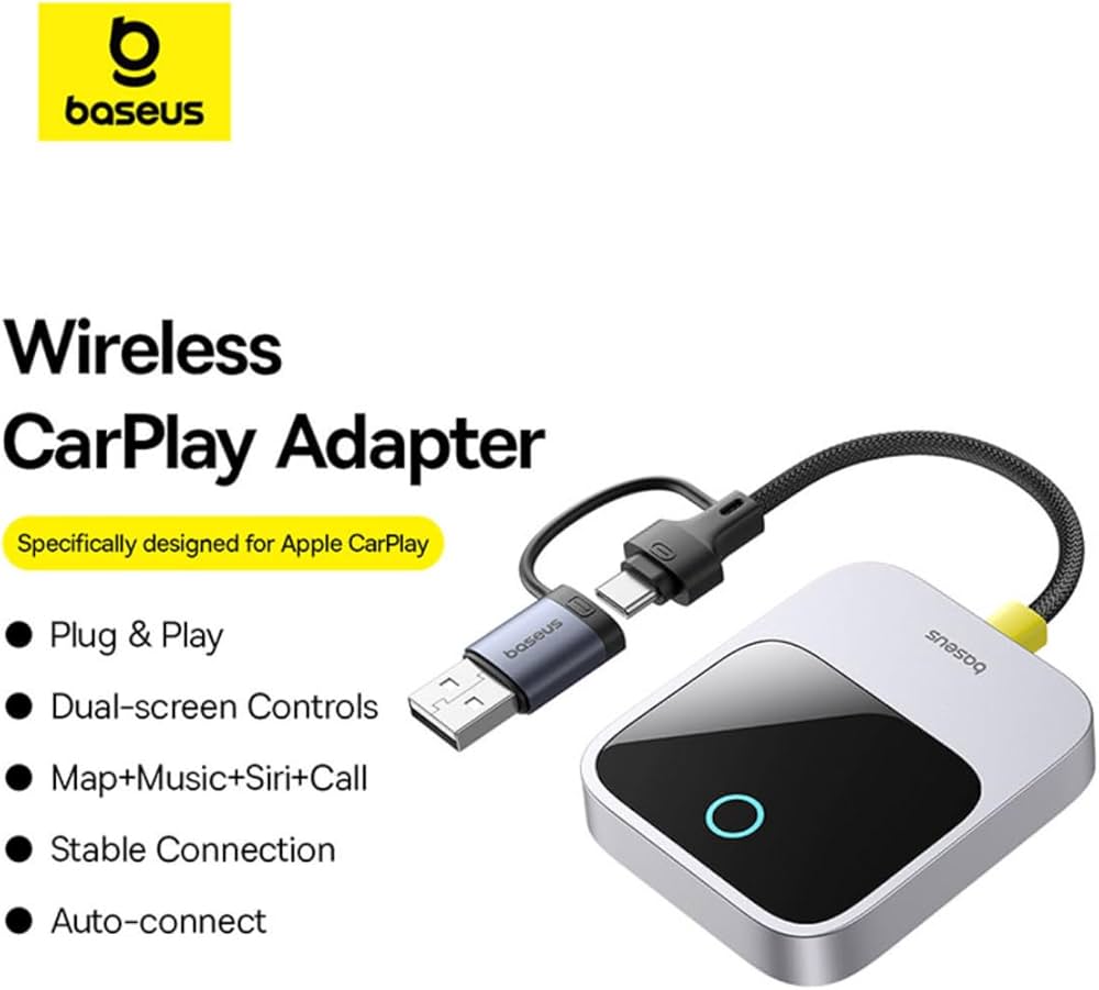Enjoy a safe and convenient drive with the Baseus Wireless Apple CarPlay Adapter , which transforms your car's wired CarPlay system into a fully wireless experience with ease and convenience. Compatible with cars from 2017 and later and iPhones running iOS 10 or later .