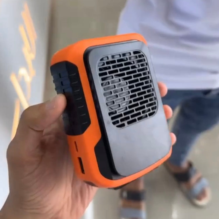 This fan has an ergonomic design and is adjustable, as you can adjust the angle and air direction as you like. Powered by a powerful and compact battery that lasts for a long time, it can also be used as a power bank to charge your portable electronic devices.