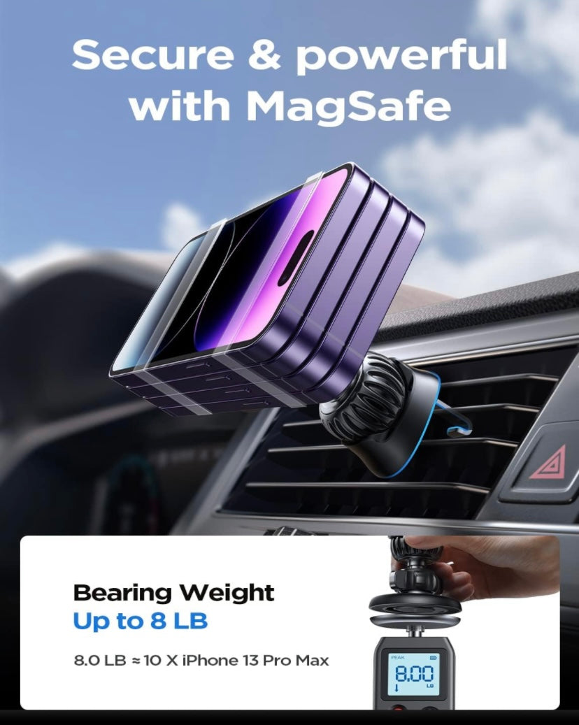 2. Vent Car Mount for iPhone Fits MagSafe iPhone 12 13 iPhone 14 Pro Max Mini Plus car mount for car vents mode: easy to install & remove rent car in vents
