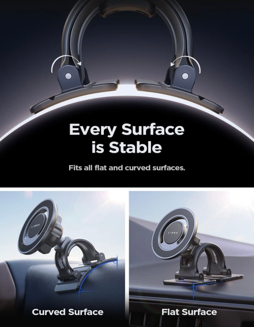 Surface of the plastic or wooden dashboard must be cleaned first, the dashboard has to wait for it to dry before sticking it, don't stick when wet. Dashboard curved & flat plastic surfaces can also be pasted, more stable than others