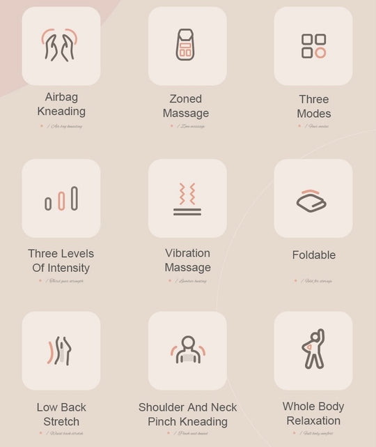 Airbag massage: body centering and finer segmentation. Human hip massage: Vibrating massage to relax tense muscles. Airbag massage: A set of 12 airbags is placed on the shoulder and upper neck. When the airbag is compressed,...Regular price AED 395.00 -