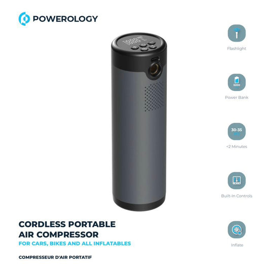 Powerology Cordless Portable Air Compressor with 5200ml Battery Capacity and 300 Lumens Flashlight