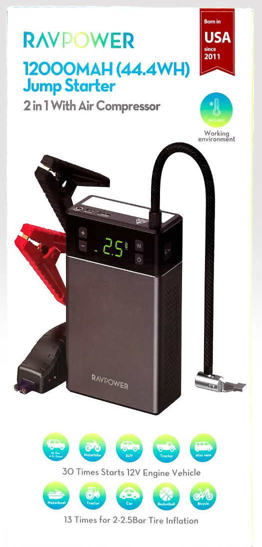 RAVPower 12000mAh Jump Starter and Air Compressor 2 in 1